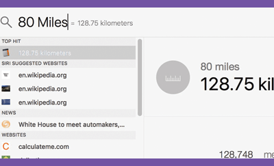 Example: If the need arises – say, “13 stone in pounds” – but, you can also just type in the amount and unit you want to convert, and your Mac will suggest not just the likely conversion, but also a handful of alternatives.