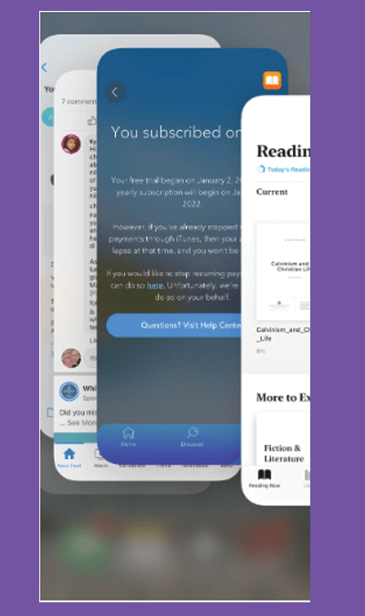 - From Home Screen, swipe up from the bottom to the middle of the screen to access App Switcher.