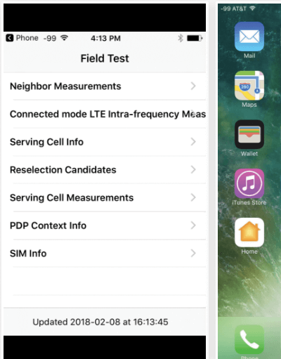 4. In iOS 6 through 10, this loads the Field Test screen and you can skip to step 7. On iOS 11 and up, it loads the Dashboard.