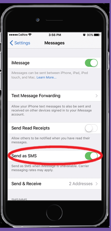 4. If your SMS input field says “Text Message” (grayed out), then you will be sending a text message (SMS).