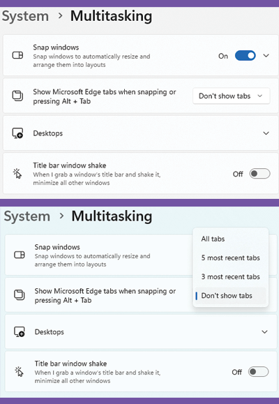 - Go to START -> SETTINGS -> SYSTEM -> MULTITASKING