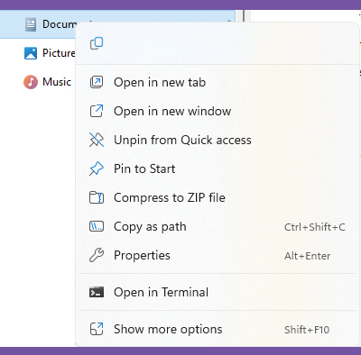 Windows 11 has a redesigned context menu (the one that appears when you right-click on files and folders in Explorer) and you may find that some options you are used to are missing. You can access the old-style menu by clicking Show more options at the bottom of the context menu, or by selecting a file or folder and pressing Shift + F10.