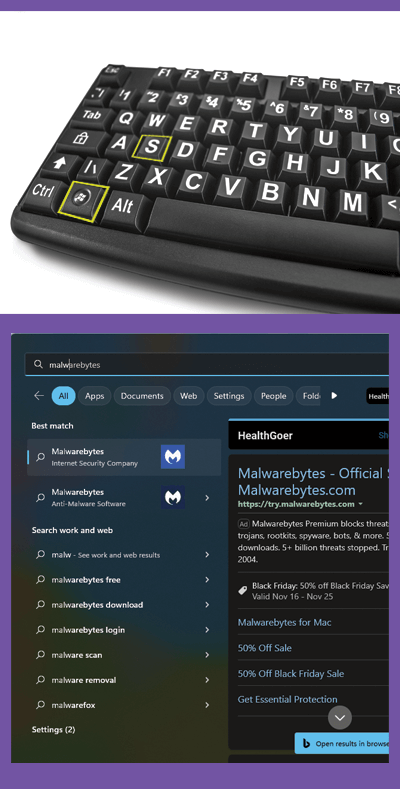 Use Windows search to get personalized search results for people, email, and files on your computer, shared sites, and from the web.
